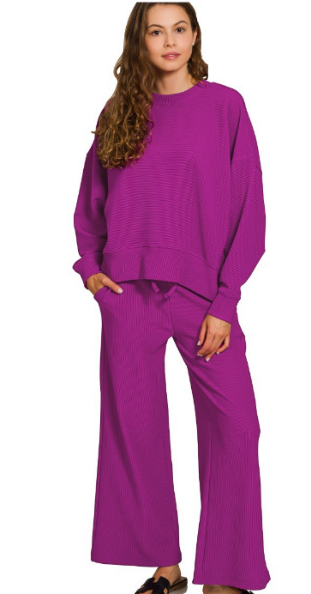 RIBBED ROUND NECK PULLOVER & PANTS SET