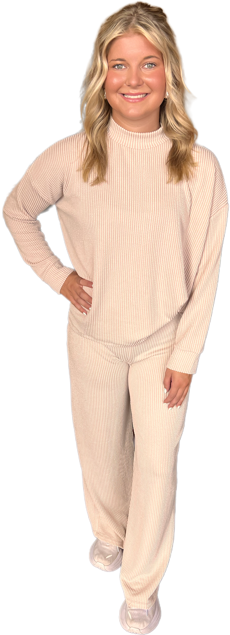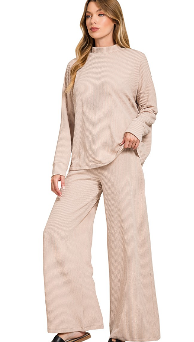 RAISED RIB MOCK NECK LONG SLEEVE TEE & PANTS SET