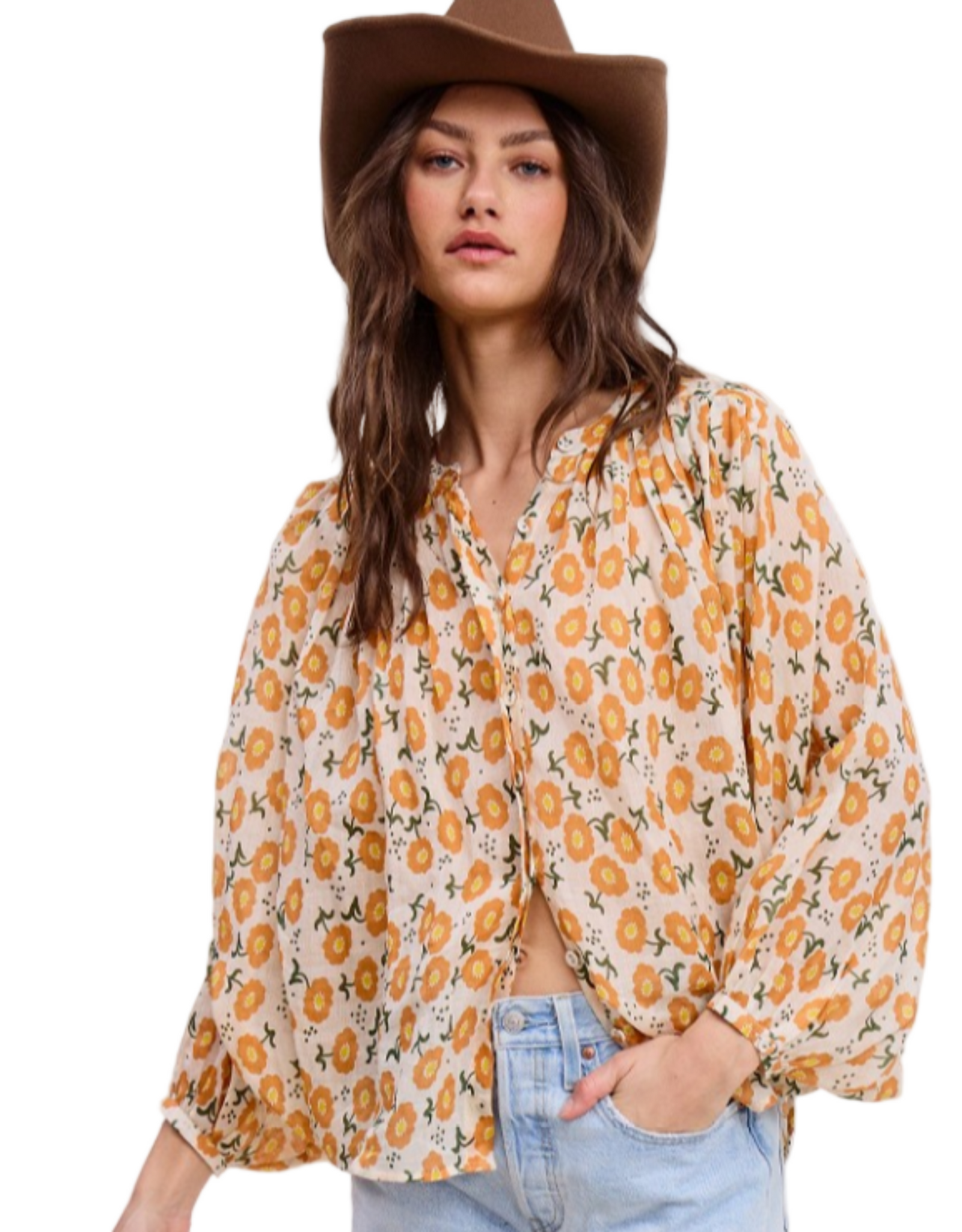 Crafted from 100% linen, this breezy blouse features a relaxed fit with voluminous sleeves and delicate floral prints, perfect for effortless styling. Available in two different colors, it offers a lightweight feel and chic versatility for any occasion.