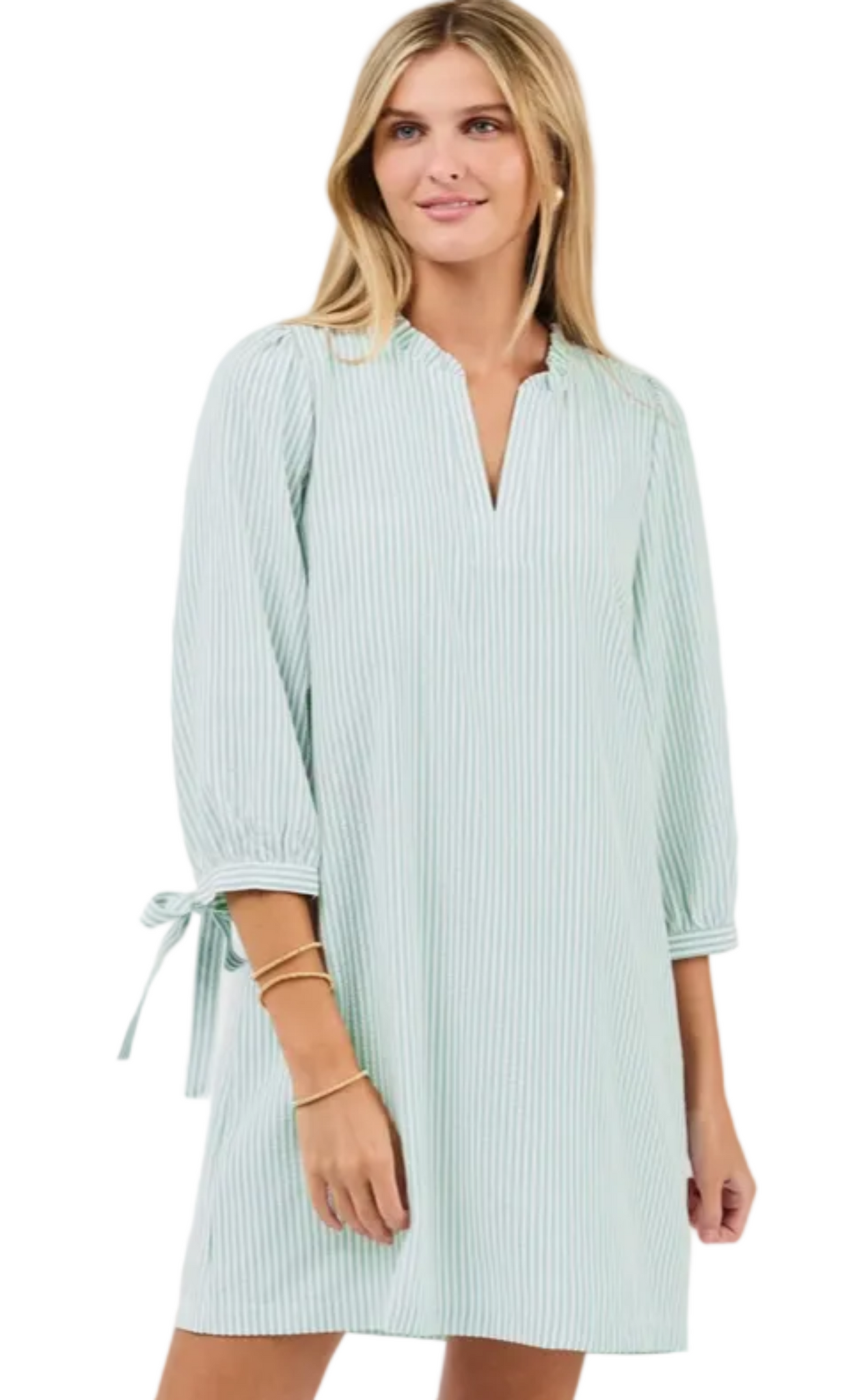 The Lainey Dress is all about effortless charm. A ruffle V-neckline and 3/4 sleeves with tie details bring subtle, stylish touches, while the straight fit keeps it comfortable and easy to wear. Perfect for everyday looks or casual outings, it’s a simple go-to you’ll reach for again and again.