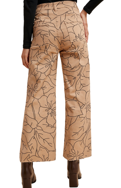 STRETCH MONOCHROME FLORAL PRINT WIDE LEG JEANS