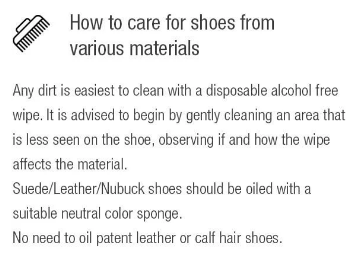 Insole is latex cushioned and coated in smooth breathable leather