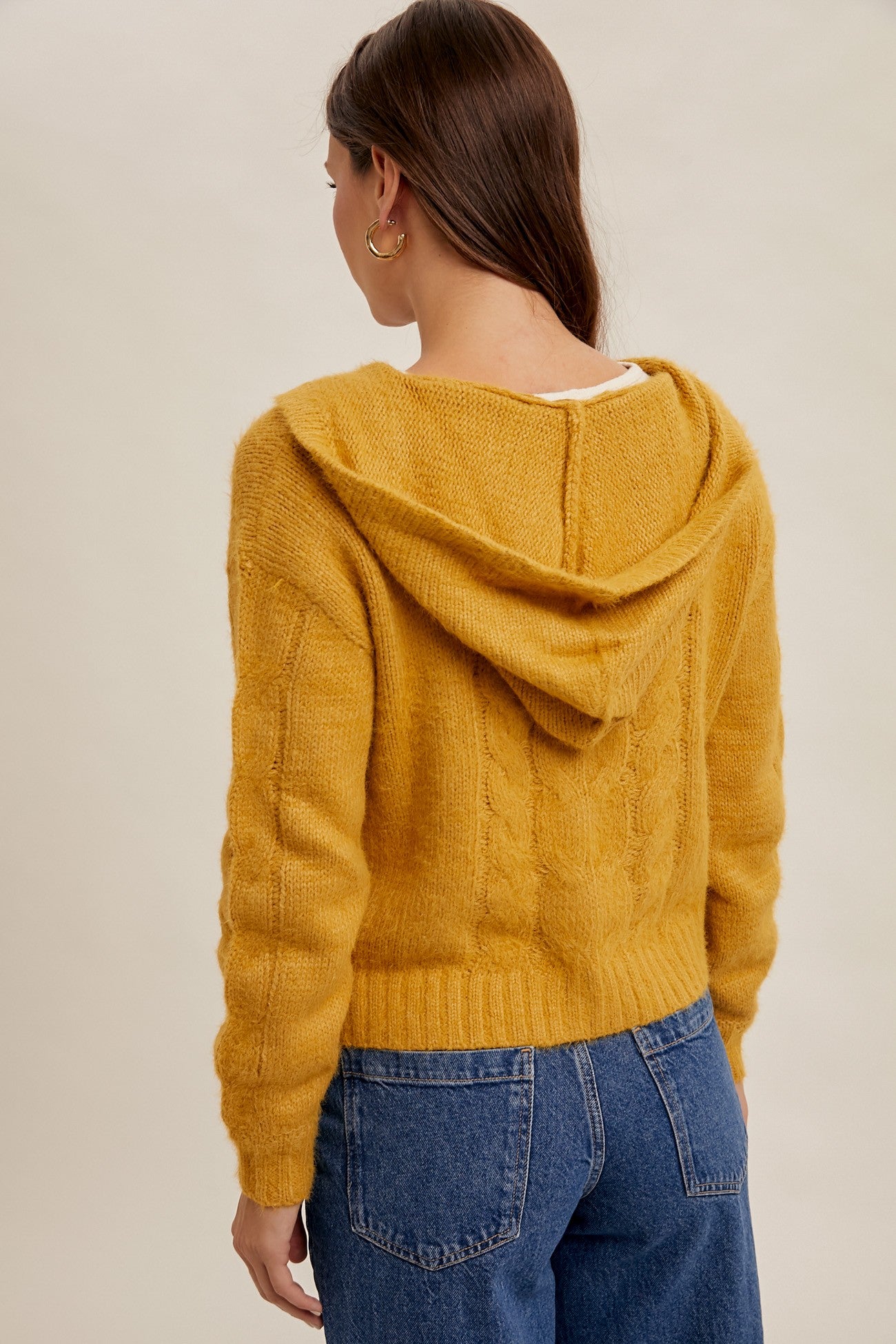EYELASH YARN BUTTON DOWN SWEATER HOODIE CARDIGAN -50% NYLON 50% ACRYLIC