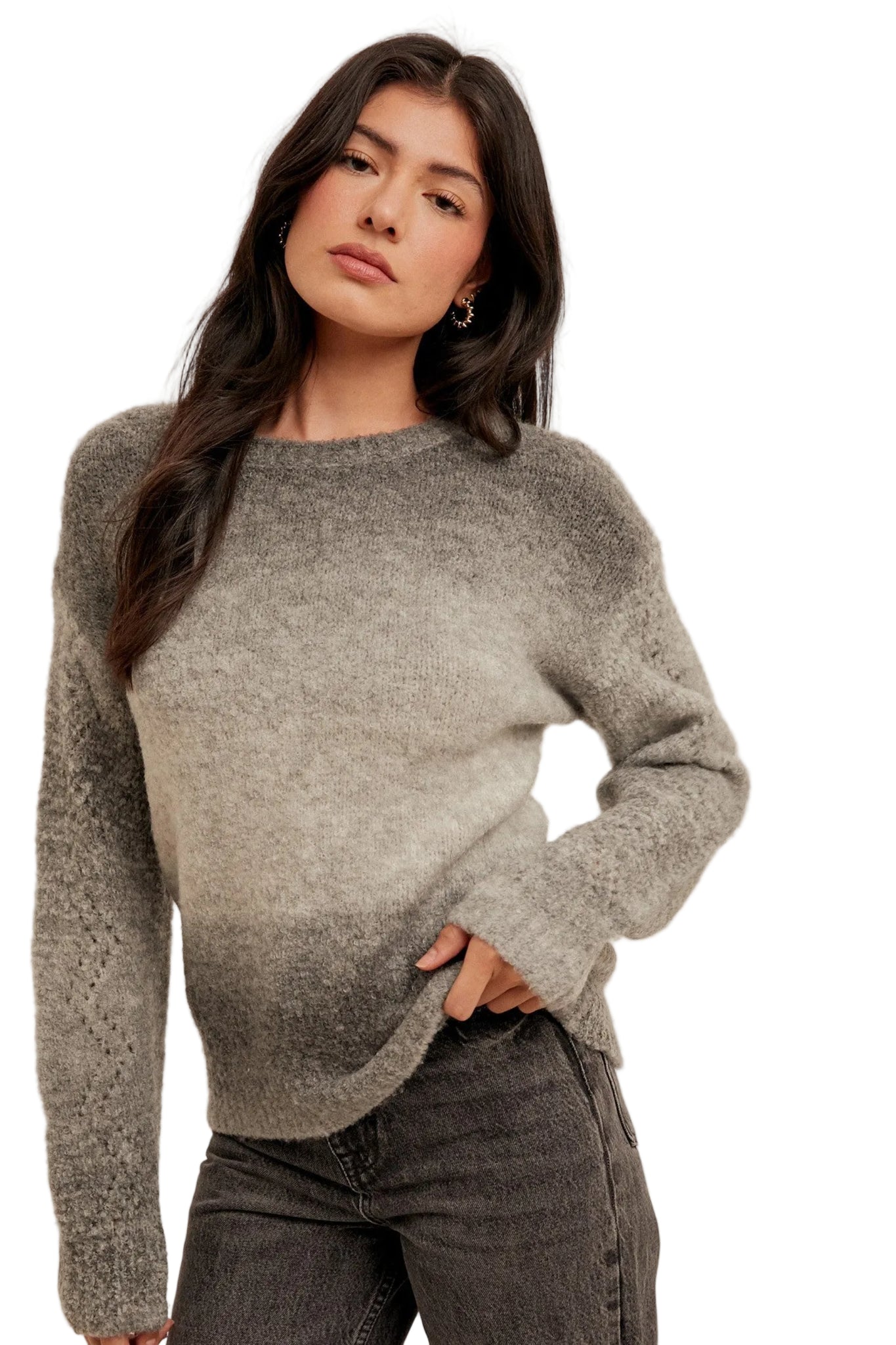 OMBRE YARN CREW NECK SWEATER PULLOVER -58% ACRYLIC 29% POLYESTER 9% NYLON 4% WOOL