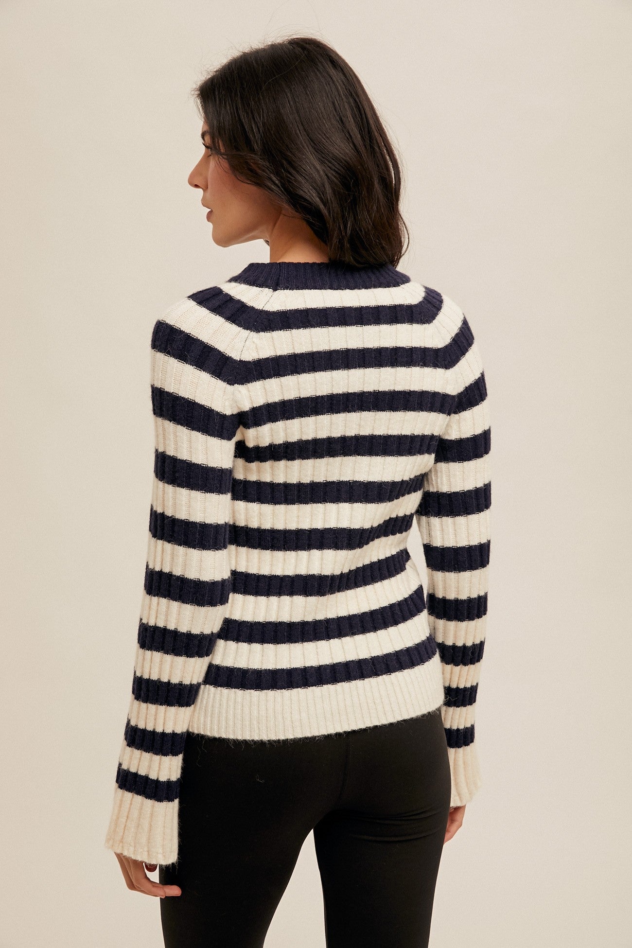 ROUND NECK RAGLAN SLEEVE RIB BELL SLEEVE PULLOVER -43% ACRYLIC 29% NYLON 28% POLYESTER