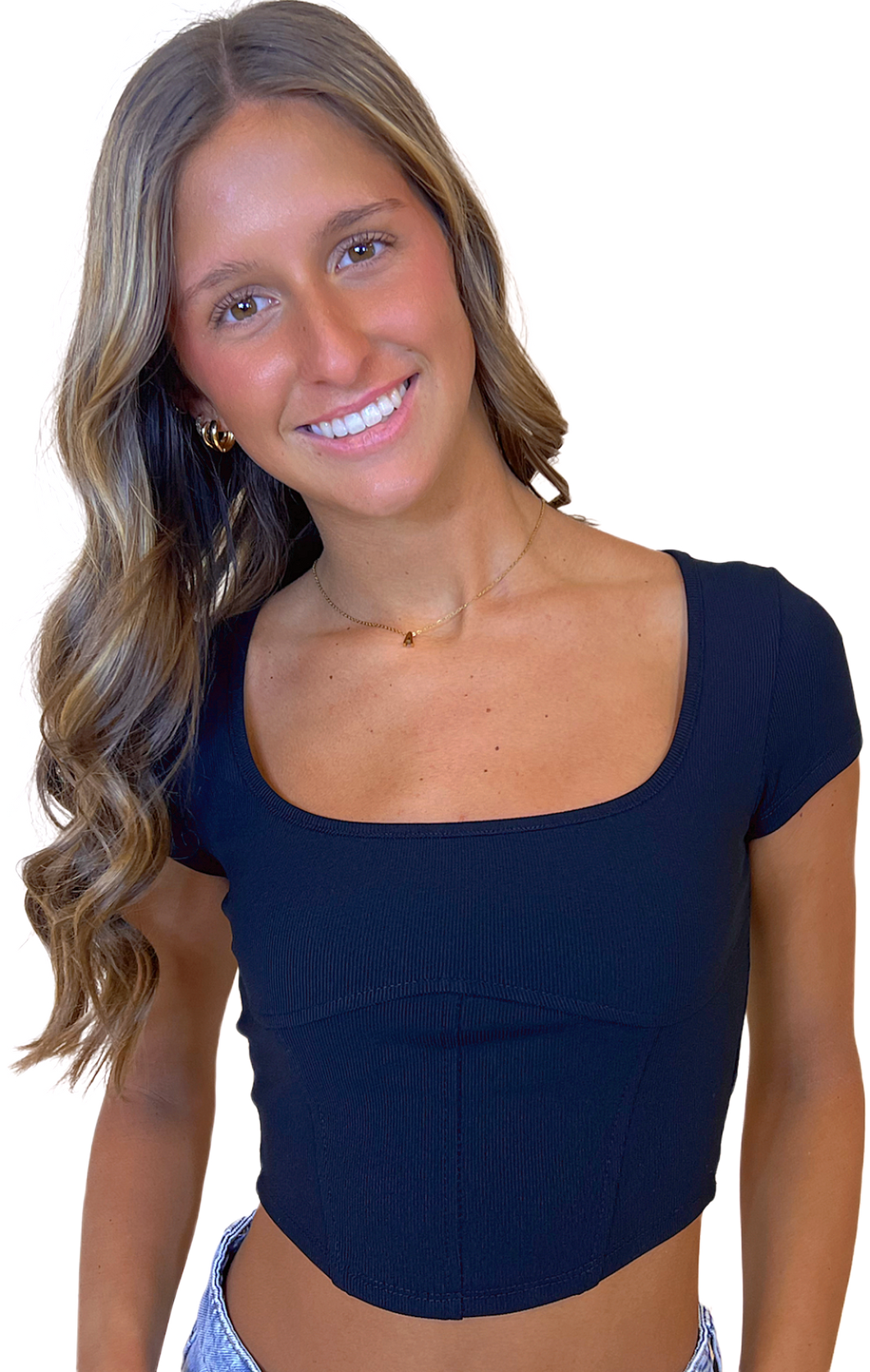 Corset detail fitted top.